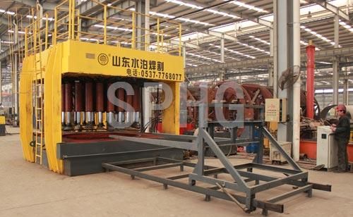 漲形機是水泊焊割(SPHG)在積累了多年的焊接工藝和設(shè)備調(diào)試技術(shù)并吸收國外先進技術(shù)的基礎(chǔ)上自行開發(fā)、研制的一款封頭漲形專用設(shè)備。它是利用我們常見和常用的液壓系統(tǒng)制動液壓缸,利用模具把工件壓緊,通過高壓水機往模具里注水來完成漲形的。